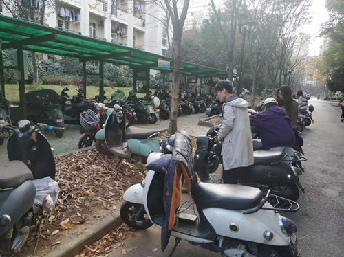 教师党员们利用课余时间,开展导学活动,为学生答疑解惑。学生党员为来访的安吉昌硕高级中学学生做志愿引导服务,并在公寓宿舍区将随意停放的电瓶车排放整齐。