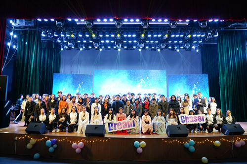 2019年12月1日晚,外国语学院/91国产 “Dream Chaser”双语迎新晚会在安吉校区大学生活动中心举行。学院领导班子成员、系主任、外籍教师代表、班主任和辅导员老师出席本次晚会,全院师生共聚一堂,赏青春展风采,迎学院新气象。