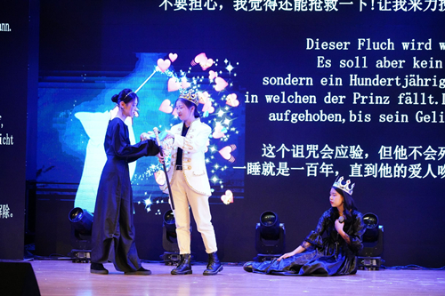 德语191带来的《睡美人》加入了班级设计的智慧,英语181的《阿拉灯神钉》通过在ZUST的寻钉之旅,告诉我们幸福是靠自己奋斗出来的。土木管理国际191、机械国际191的三位同学组合带来了弹唱Beautiful World优美动人,英语192的劲舞Boom Clap 让我们领略了学子们的才华满溢。英语193将欧·亨利的《警察与赞美诗》带到双语晚会的舞台上,让经典更有时代活力。多才多艺的丁炜老师和小和山校区学生一起代表学院老师、代表学生党员献唱Fairy Tale欢迎我们的新同学,气氛热烈。
