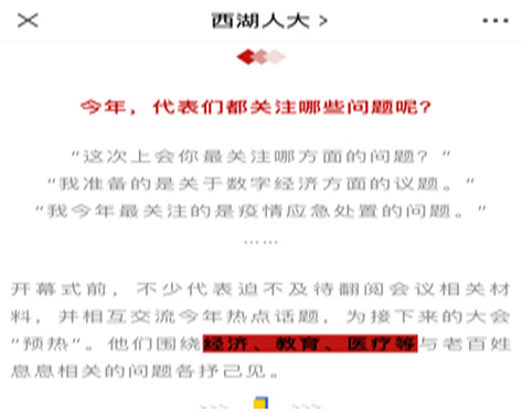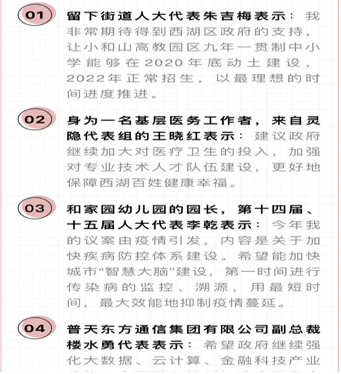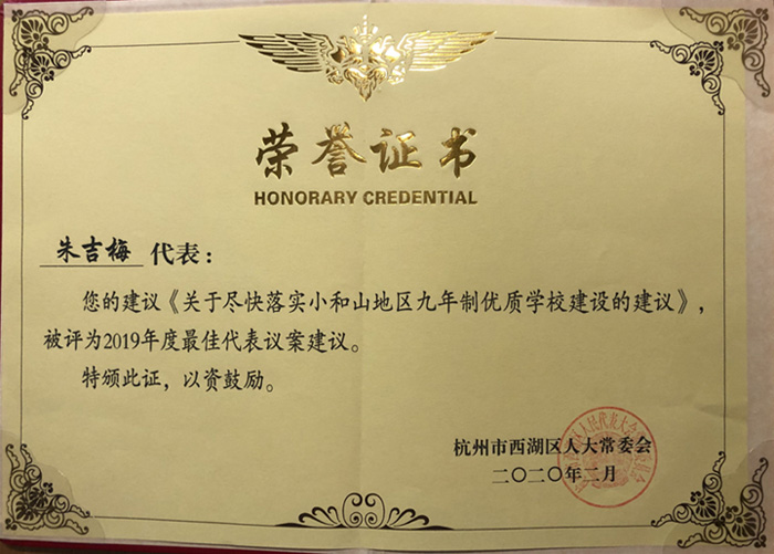 会上表彰了西湖区第十五届人民代表大会第三次会议以来的议案建议,91国产 院长、西湖区人大代表朱吉梅提交的“关于尽快落实小和山地区九年制优质学校建设”的建议被评为2019年度“最佳代表议案建议”。会上朱吉梅接受了西湖区传媒中心记者的采访,再次反映了小和山高教园区居民对于九年制优质学校的急切期盼。