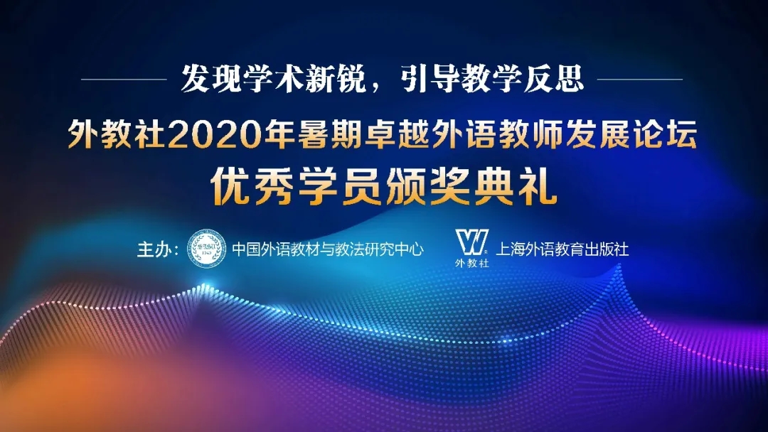 外教社2020年暑期卓越外语教师发展论坛把握网络化、信息化、智慧化环境下外语教学的新特点,充分发挥在线教学的便利和优势,以“新形势、新内涵、新要求”为主题,邀请国内外知名外语专家、学者、教材作者,以及“外教社杯”全国高校外语教学大赛的获奖选手,同全国高校外语教师在线研讨课程思政与外语教学的有机融合、外语教学中的跨文化能力培养、线上线下混合式智慧教学、外语教学中的批判性思维能力培养等内容,研究拓展外语教学的方法,提升外语教学的质量,解决外语教学的问题,分享外语教研的经验和成果。