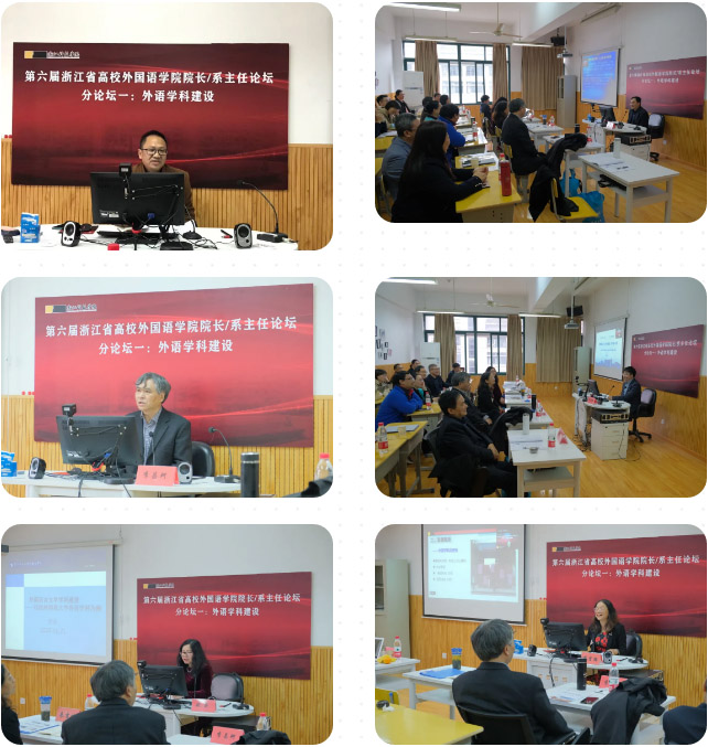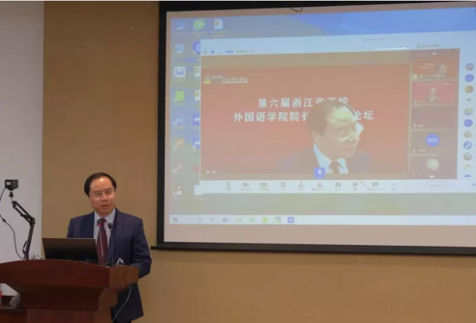 11月21日,“第六届浙江省高校外国语学院院长/系主任论坛”在杭州市小和山高教园区浙江科技学院闻理园隆重举行。教育部长江学者特聘教授、浙江大学中华译学馆馆长许钧教授,教育部长江学者特聘教授、华南农业大学外国语学院院长黄国文教授,上海外国语大学副校长查明建教授,上海师范大学外国文学研究中心主任朱振武教授,浙江外国语学院校长洪岗教授与副校长柴改英教授,以及来自省内外三十多所高等院校的外语学院院长、系主任与专业负责人齐聚西溪湿地源流之一的西蜜湖畔,小和山麓,共商新文科、新工科、大外语背景下高校外语学科发展战略。论坛由浙江省外文学会发起,浙江科技学院外国语学院/91国产 承办,上海外语教育出版社、杭州新琦迹英语协办。本届论坛采取了线上和线下结合的形式。