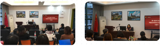 院长朱吉梅教授分析了本校外语学科因历史短、受所在理工科院校评价体系的影响、大学英语教学基础最薄弱,以及师资队伍“三缺、三多和三低”等因素导致外语学科建设的瓶颈,并介绍了通过采取强化师资队伍建设、实施学生、学术和学科的一体化综合发展体系,以及营造奋发进取的学院氛围等应对措施后所取得的初步成绩。“杏坛巾帼 外语筑梦”,2020年外语教学团队被浙江省妇女联合会授予“浙江省巾帼文明岗”荣誉称号,为全省唯一获此殊荣的省属本科高校。