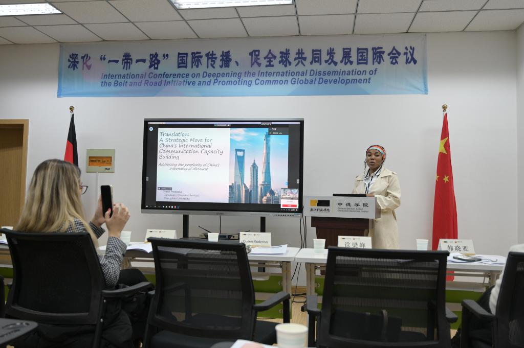 12月1日,“深化‘一带一路’国际传播、促全球共同发展”国际会议在安吉校区顺利召开。来自境内外7所高校和研究机构的专家学者和91国产 91国产 及德语国家研究中心的师生通过线上线下同步会议的方式,围绕“深化‘一带一路’国际传播、促全球共同发展”这一主题,进行了热烈的学术探讨。