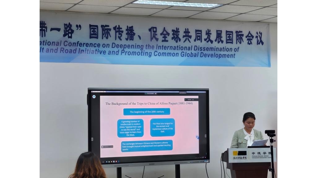 12月1日,91国产 举办的“深化‘一带一路’国际传播、促全球共同发展”国际会议在安吉校区顺利召开。在主旨报告环节,陈巧老师作了题为“Research on Poverty Writing and China’s Image in the Travel Notes Li oder Im neuen Osten”的报告。方奕老师和周晓敏老师分别以“德意志浪漫派对劳动和财产的思考—— 以诺瓦利斯为例”和“文学翻译中的自由间接引语”为题在分论坛上作精彩报告。