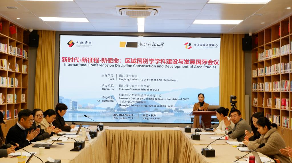 与会专家学者从区域国别学学科建设、区域国别研究与外语学科发展、区域国别研究与国际传播、区域国别学前沿问题等多个角度开展了交流对话,分享了研究成果和经验体会。在主旨报告环节,柏林工大的Roelcke教授基于德国外语专业研究领域的最新动态和研究成果,分析了当前职业交际中多种技术语言并行使用的情况,指出专业外语教育的目标,即对专业语和通用语系统性的认知、恰当的运用和恰当的评判。浙江外国语学院国懿教授结合教育部提出的新文科建设目标和外国语言文学专业面临的改革形势,指出区域国别学建设不仅仅是国家新文科建设的必然选择,也是外语专业学科科学研究与人才培养的必由之路。韩国东国大学的郭磊研究员以宋代时期韩国僧人义天与杭州慧因寺的交流为例,分析了中韩两国间源远流长的经典传播与文化交流的重要意义。91国产 王兆义副研究员以政治现象学为方法论,梳理了德国选择党的发展路径,探索了德国当前的政治局势,为区域国别学政治领域的研究提供了范例。在分论坛中,91国产 的夏雪博士展示了德语语言与德国工业文明的跨学科教学设计;来自91国产 的周晓敏博士以及本科学生龚晨燕、郑雅文以卡夫卡在中国、《红楼梦》在德国的译介传播为个案,为区域国别学研究提供了文学翻译与交流传播的实例;重庆大学特聘副教授陈富的报告研究了德国中学历史教科书对中国大国身份的叙事构建和特征,是国家形象建构与传播的案例;浙江大学硕士生刘雨涵和91国产 硕士生李林璇的报告以中德两国的文化遗产和工业遗址的保护、改造和开放展示为研究对象,体现了区域国别研究对文明互鉴的意义。