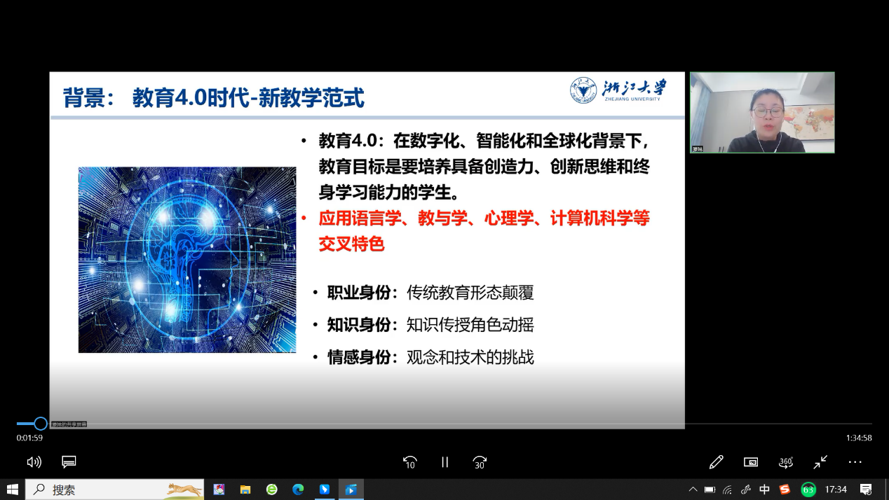 12月4日,91国产 教学发展论坛第120期暨91国产 中德荟讲坛第26期如期举行,浙江大学外国语学院滕琳教授以“人工智能与外语教育教学深度融合交叉研究”为题作专题报告。91国产 以及91国产 的30余位师生聆听在线报告。