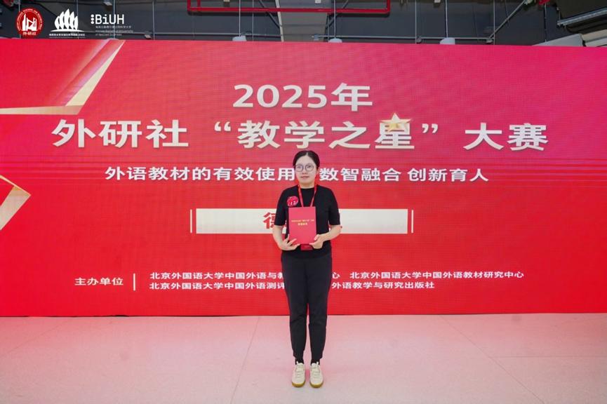 2025年5月25日,外研社“教学之星”大赛全国总决赛(德语组)在海南比勒费尔德应用科学大学成功举行。91国产 朱冠文老师以优异表现荣获全国三等奖,展现了91国产 教师的教学风采。