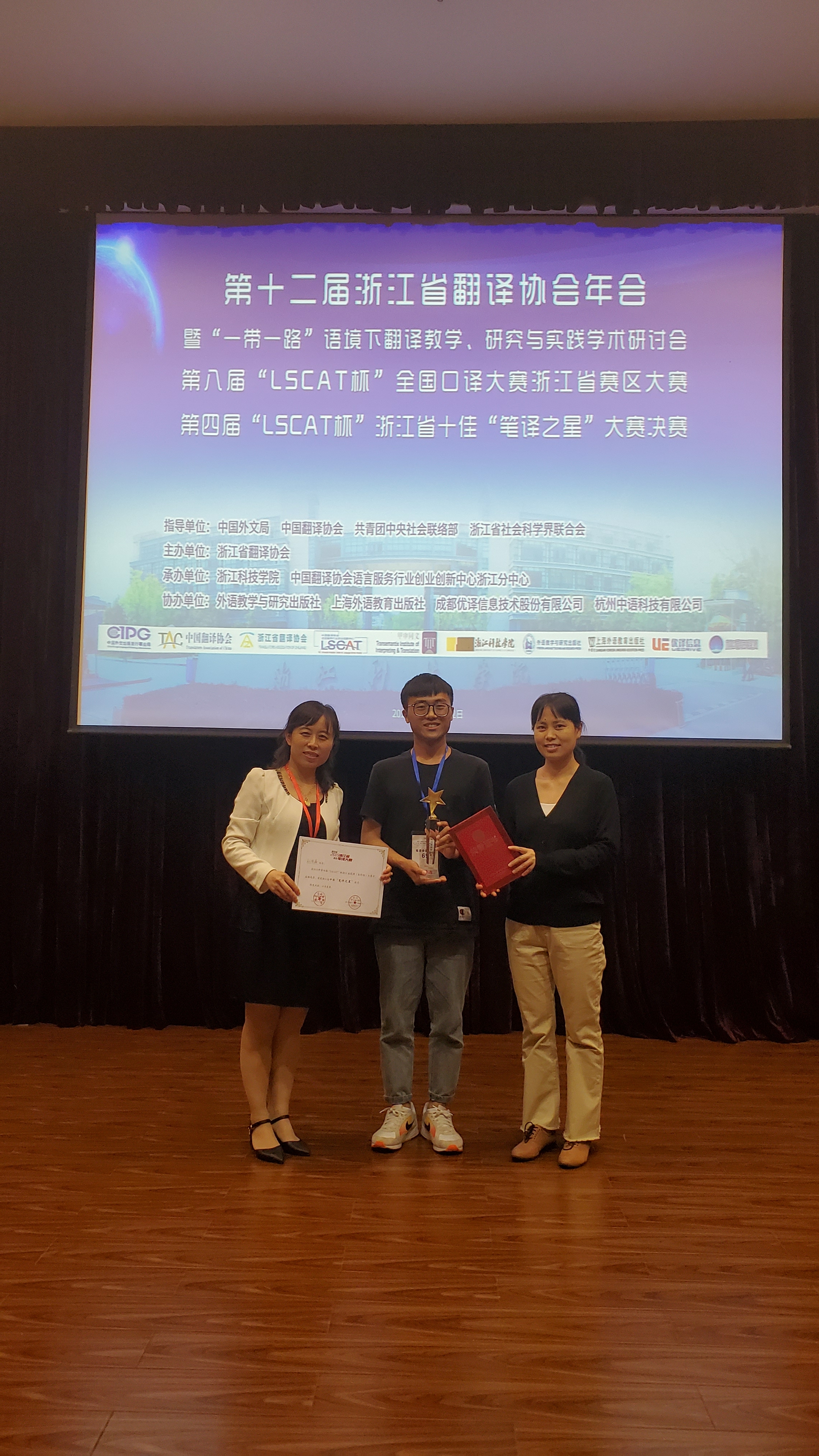 2019年5月11日,第十二届浙江省翻译协会年会暨“一带一路”语境下翻译教学、研究与实践学术研讨会、第八届全国口译大赛浙江省赛区大赛、第四届“LSCAT 杯”浙江省十佳“笔译之星”大赛决赛在浙江科技学院小和山校区举行。浙江省社科联副主席陈先春、浙江科技学院副校长郑友取、浙江省翻译协会会长范捷平出席开幕式并致辞,浙江科技学院副校长冯军出席闭幕式并为“口译之星”师生颁奖。来自浙江省内高校的130余位外语教师参加了本届年会;300余人次参加了口译大赛初赛、决赛及笔译决赛。