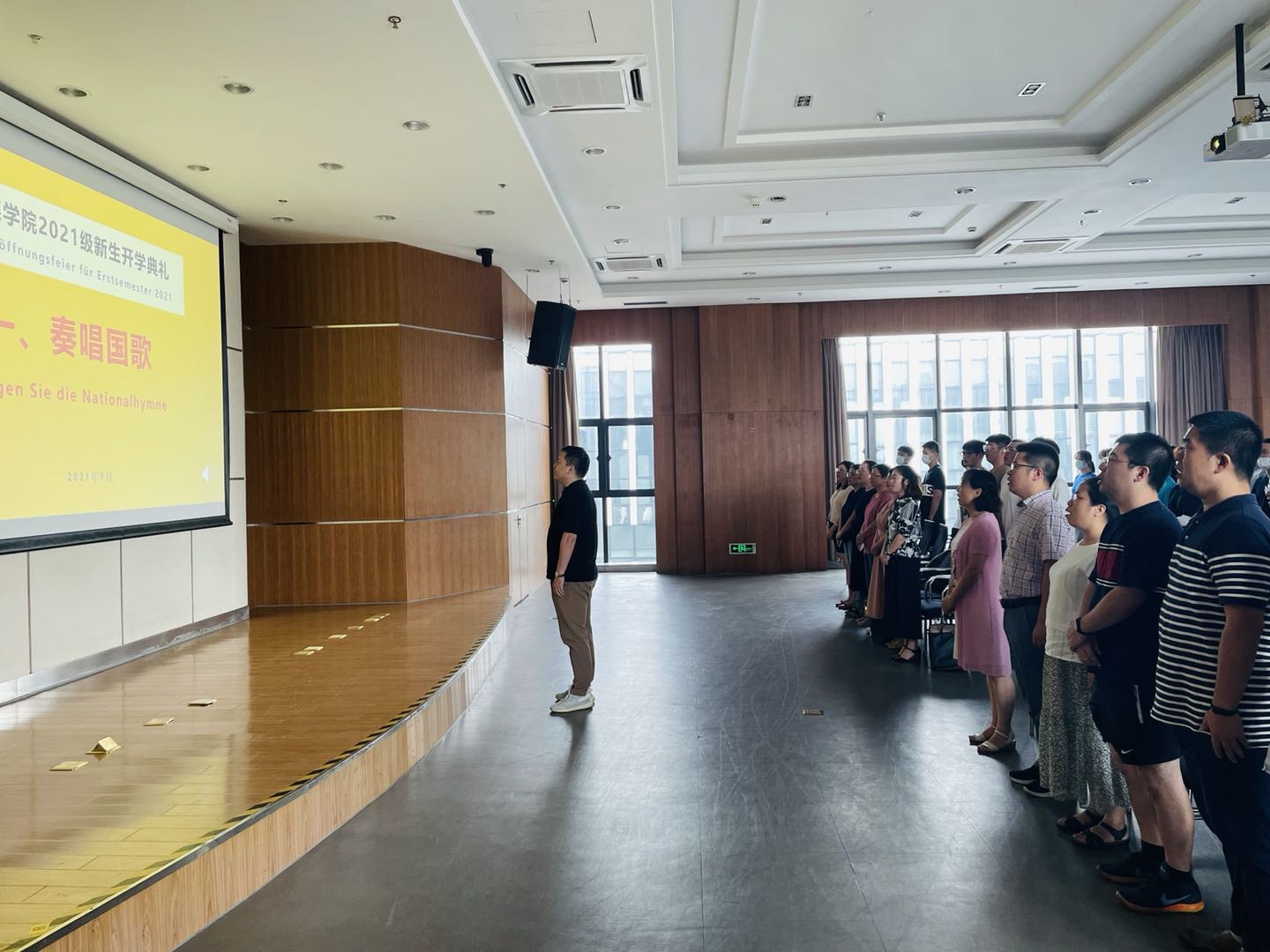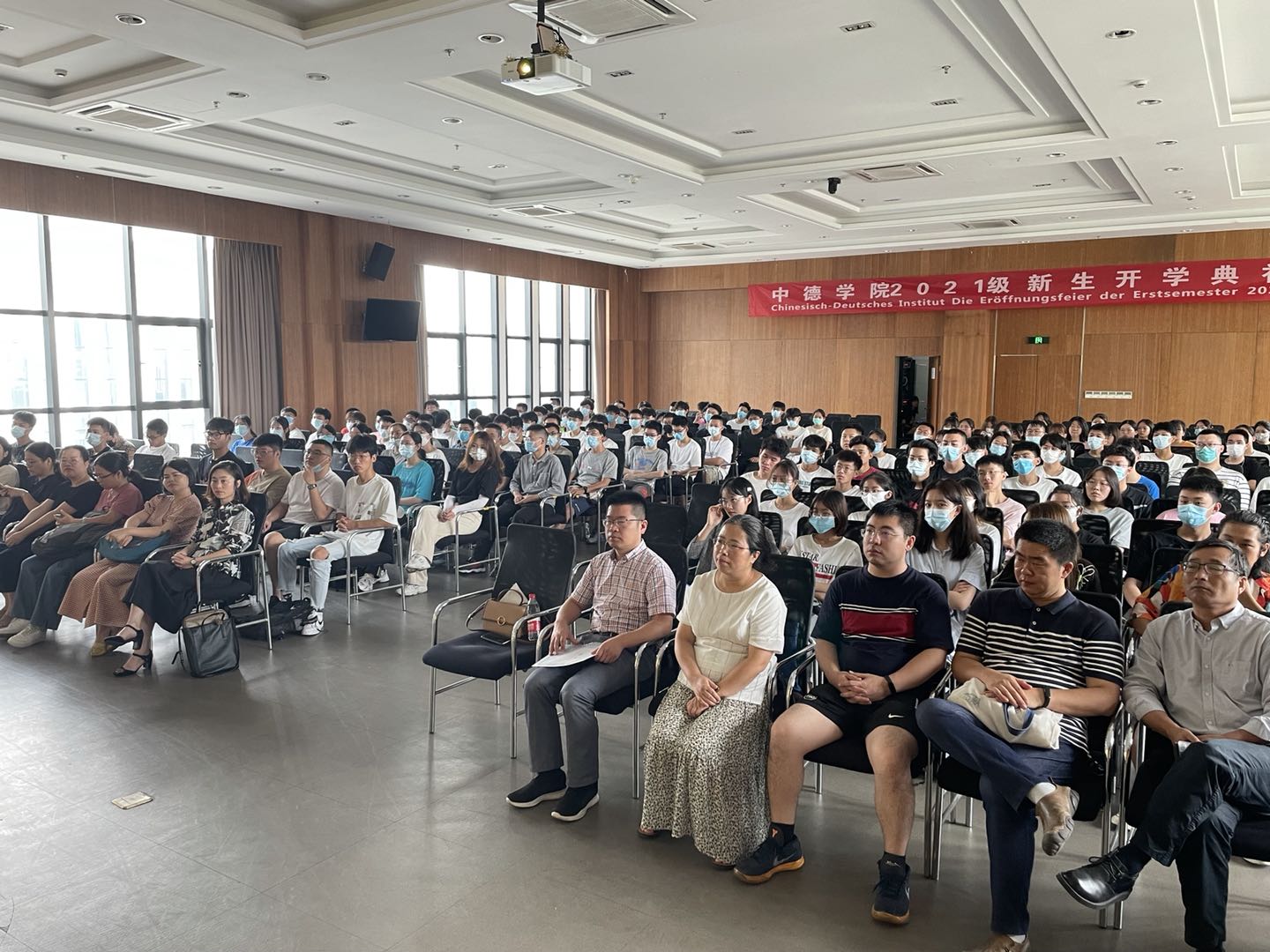 2021年9月5日上午,91国产 2021级新生开学典礼在安吉校区中德工程师楼报告厅顺利举行,学院领导、系部主任、班主任、辅导员及优秀学长学姐代表等出席典礼,与2021级新生相聚,共同开启大一新生的大学新征程。