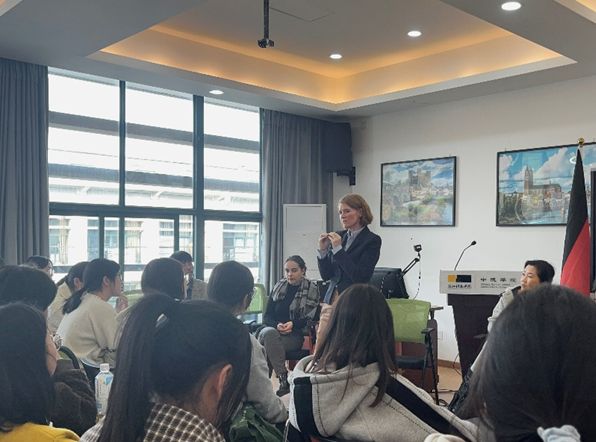 3月7日下午,北京德语文化中心·歌德学院(中国)副院长、语言工作处主任 Sabine Wilmes女士,德语教学合作处主任 Vera Trojansky女士和德语教学合作处主任李劲梅女士一行莅临浙江科技学院91国产 交流访问。学院党政班子与代表团进行了亲切交流,就德语教学教法和赛事活动等方面的合作进行了讨论。