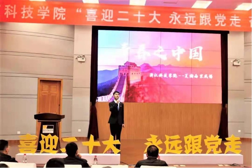 2022年3月29日晚,浙江科技学院“喜迎二十大,永远跟党走,奋进新征程”思政微课大赛决赛在图书信息中心西报告厅举行。