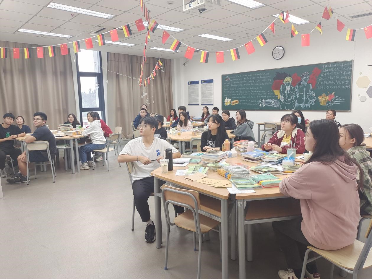 德语201王琨、朱欣怡两位学姐为德语专业的同学们分享了优良学风创建以及专业学习经验、为同学们提供了许多努力方向,也使未来的德语学习道路更加明朗。两位学姐作为德语专业优秀学生代表,专业排名名列前茅,并积极参加校级省级以及国家级竞赛,是我们所有中德学子学习的榜样。她们向同学们分享了校级特优学风示范班(德语201班)的风采,为优良学风班建设提出了许多有益建议,同时鼓励同学们积极参与专业类学科竞赛,在挑战中提升自我。在德交换学习的她们也分享了许多学习建议,让同学们更好地了解了留德交换项目,并鼓励大家勇敢向目标迈进,最后两位学姐细心解答了同学们提出的疑问,此次讲座使同学们收获颇丰。
