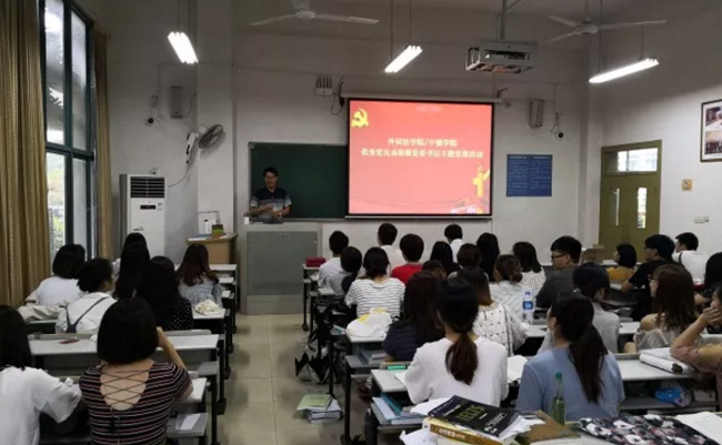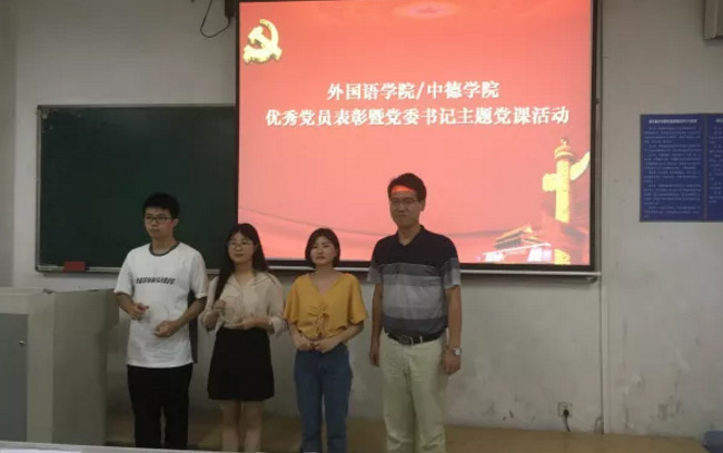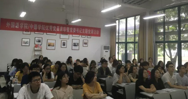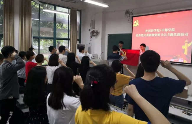 在毕业生离校之际,外国语学院/91国产 组织毕业生党员,开展党员教育系列活动,通过优秀党员表彰、交纳“特殊党费”、重温入党誓词、再上一堂党课等活动,进一步提高毕业生党员的思想觉悟和使命担当意识。