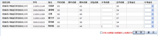 特别提醒:所有安排了补考的课程都必须录入成绩并提交。如学生缺考,须备注补考缺考后提交。