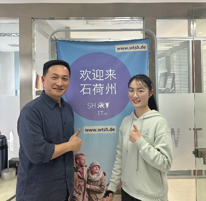 “读万卷书,不如行万里路。”王琨同学认为学习语言不仅仅是掌握语法和词汇,更重要的是理解和融入这种文化。因此,她于大三学年参加了91国产 国际交流项目,以第一名的成绩被选派为91国产 赴德国希尔德斯海姆大学交换生。在德期间,活跃于国际处举办的各类活动,与德国同学结成语伴,考出德福18证书(C1水平),获德方奖学金。回国后,于德国石荷洲经济促进中心杭州办事处进行了为期6个月的实习,在中德两国的外事工作中,巩固了所学知识,收获了宝贵的实践经验。