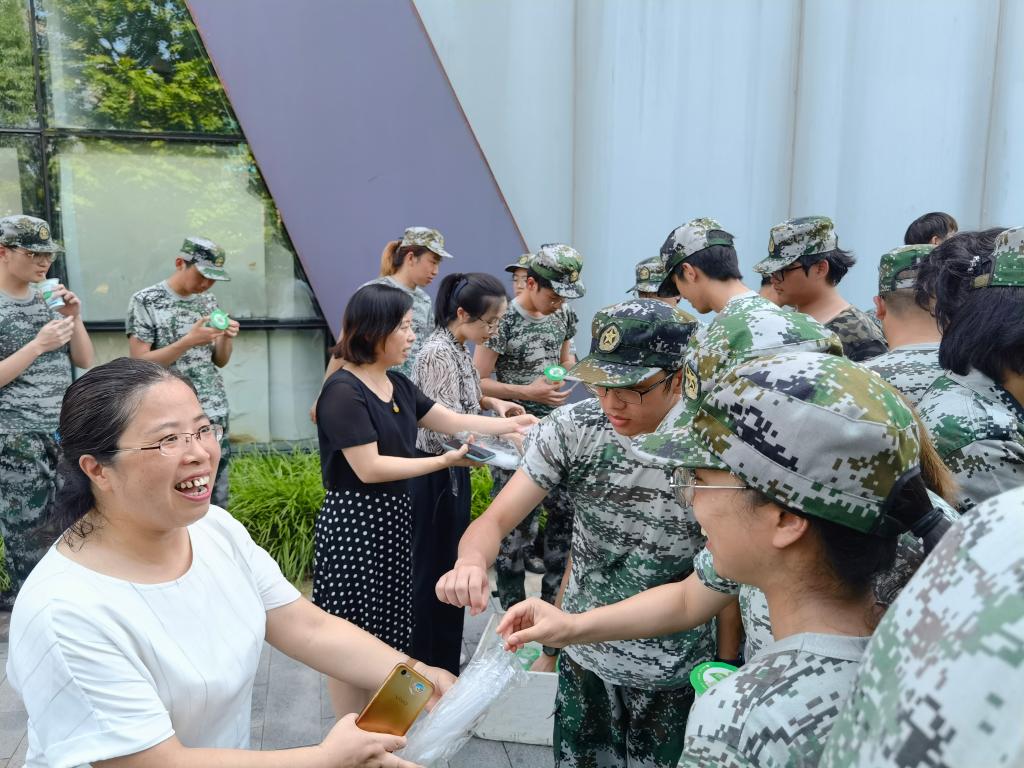 7月15日,学院党政班子成员和安吉辅导员一起看望正在参加军训的2020级大一学生,在炎炎酷暑中给每一位学生送去了一杯清凉的绿豆汤,并鼓励同学们要坚持训练、不屈不挠,通过军训锻炼自己的意志品质,展现出团结拼搏、互爱互助的91国产 学生的精神风貌。军训是加强大学生国防教育的必修课,也是锻炼学生意志品质的重要手段,同学们纷纷表示,自己一定能坚持下去,圆满完成军训任务。党政班子对带队教官们也表达了感谢和致意。
