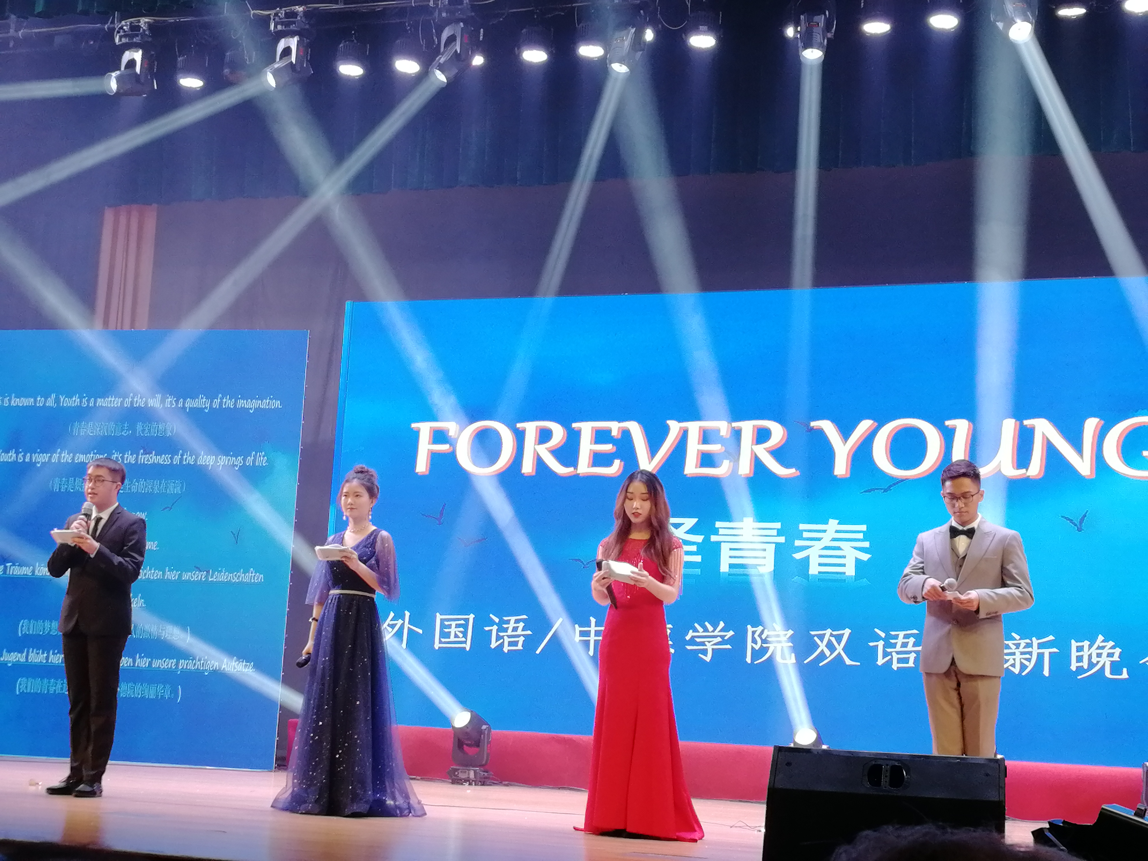 2018年12月2日,外国语学院/91国产 “Forever Young”双语迎新晚会暨“外语导学360”志愿服务启动仪式在安吉校区大学生活动中心举行。副校长郑友取,校长助理、安吉校区党工委书记鲁伟权,安吉校区党工委副书记、综合办主任刘发明,安吉校区学生事务中心主任葛龙威以及学院领导班子成员、系(部)主任、教工党支部书记、外籍教师代表、18级班主任参加了本次晚会,全院师生共聚一堂,享节目盛宴,迎新年气象。朱吉梅院长致辞...
